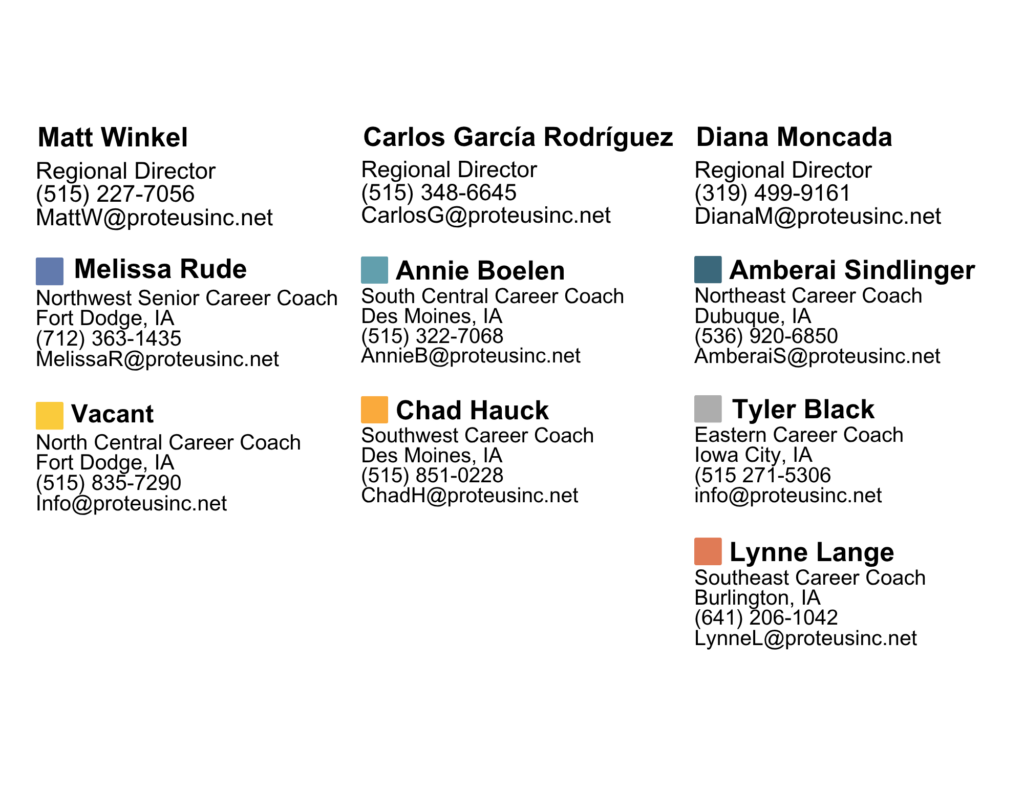 Farmworkers in Iowa are welcome to connect with a career coach, a regional director, or a health team lead.